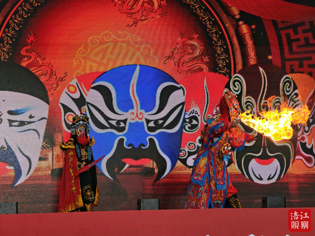 巡游隊(duì)伍抵達(dá)如意廣場后,文藝匯演拉開帷幕,歌曲、舞蹈、魔術(shù)、器樂演奏等節(jié)目輪番上演,美猴王互動(dòng)、吐火絕技、舞蹈《鳳鳴朝陽》等精彩節(jié)目引得現(xiàn)場掌聲不斷。