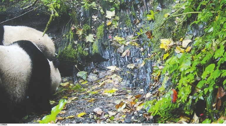 紅外相機拍攝到的大熊貓母子共同飲水畫面?!〈笮茇垏夜珗@安州片區(qū)供圖