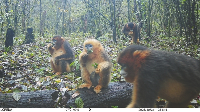 川金絲猴正在取食?!〈笮茇垏夜珗@安州片區(qū)供圖