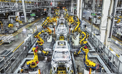 位于重慶市兩江新區(qū)的賽力斯汽車超級工廠拍攝的自動化生產作業(yè)現(xiàn)場(2025年9月19日攝,無人機照片)。新華社記者 王全超 攝