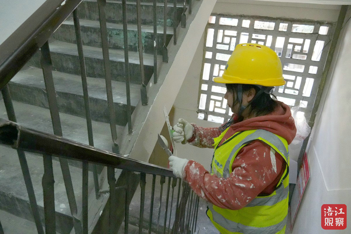 在長(zhǎng)虹一區(qū),屋面防水補(bǔ)漏、樓梯間翻新、照明增設(shè)、扶手欄桿更換、滅火器更新、外立面整治與線路規(guī)整同步推進(jìn)。