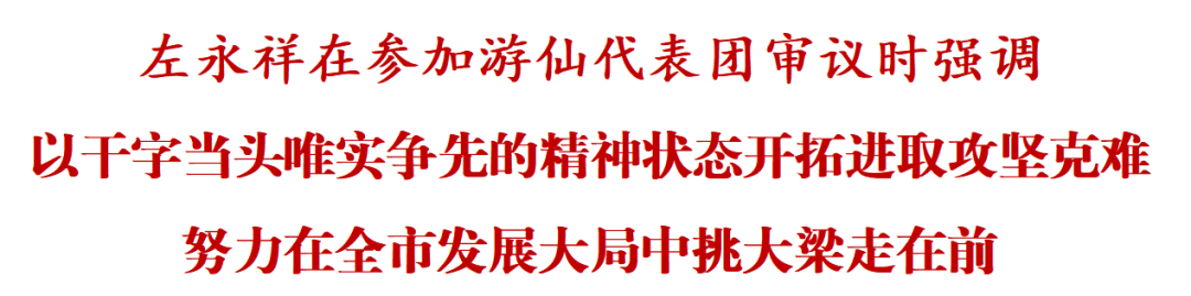 綿陽(yáng)新聞網(wǎng)訊 3月7日,省委常委、市委書(shū)記左永祥參加游仙代表團(tuán)會(huì)議,與代表們一起審議政府工作報(bào)告、審查“十五五”規(guī)劃綱要草案等。他強(qiáng)調(diào),要深入學(xué)習(xí)貫徹習(xí)近平總書(shū)記對(duì)四川對(duì)綿陽(yáng)工作系列重要指示精神,全面落實(shí)黨中央大政方針和省委、市委部署要求,牢牢把握高質(zhì)量發(fā)展這個(gè)首要任務(wù),以干字當(dāng)頭、唯實(shí)爭(zhēng)先的精神狀態(tài)開(kāi)拓進(jìn)取、攻堅(jiān)克難,努力在全市發(fā)展大局中挑大梁、走在前。
