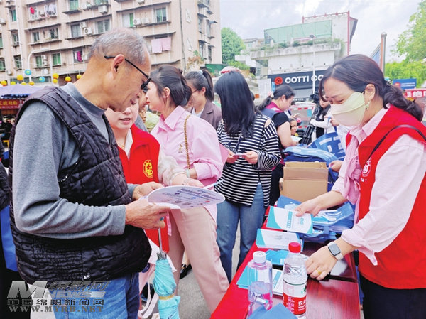 江油市醫(yī)保局工作人員向群眾講解醫(yī)?;鸨O(jiān)管知識。