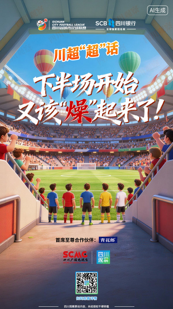 在城市之間的友誼之外,“川超”作為競(jìng)技體育的一大意義自然是角逐錦標(biāo)。如果把本賽季的“川超”比作一場(chǎng)足球比賽,那么即將到來(lái)的總決賽正是下半場(chǎng)的開始。想想即將上演的“絕地反擊”“一路逆襲”“補(bǔ)時(shí)絕殺”“神兵天降”“天神下凡”,怎能不叫人熱血沸騰?四川的球迷們,又該“燥”起來(lái)了!穿上“征袍”,豎起“旌旗”,拿上“大喇叭”,我們球場(chǎng)見!