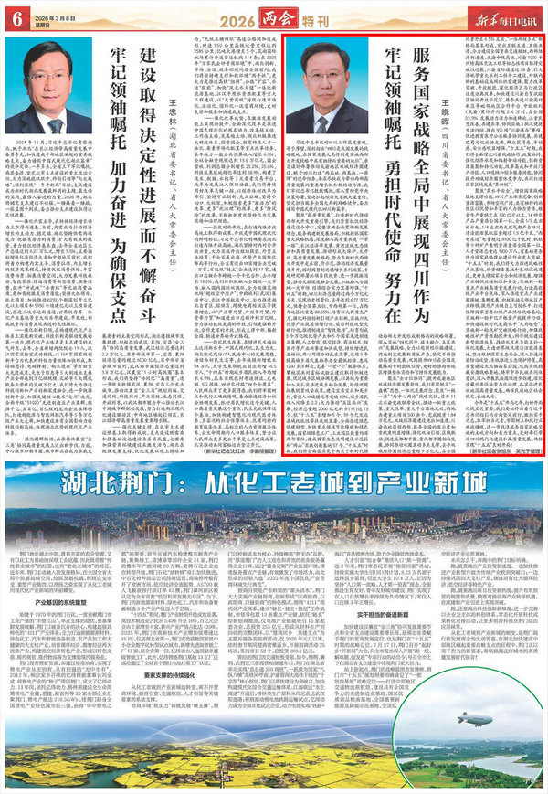 3月8日,《新華每日電訊》刊發(fā)四川省委書(shū)記、省人大常委會(huì)主任王曉暉署名文章《牢記領(lǐng)袖囑托 勇?lián)鷷r(shí)代使命 努力在服務(wù)國(guó)家戰(zhàn)略全局中展現(xiàn)四川作為》。