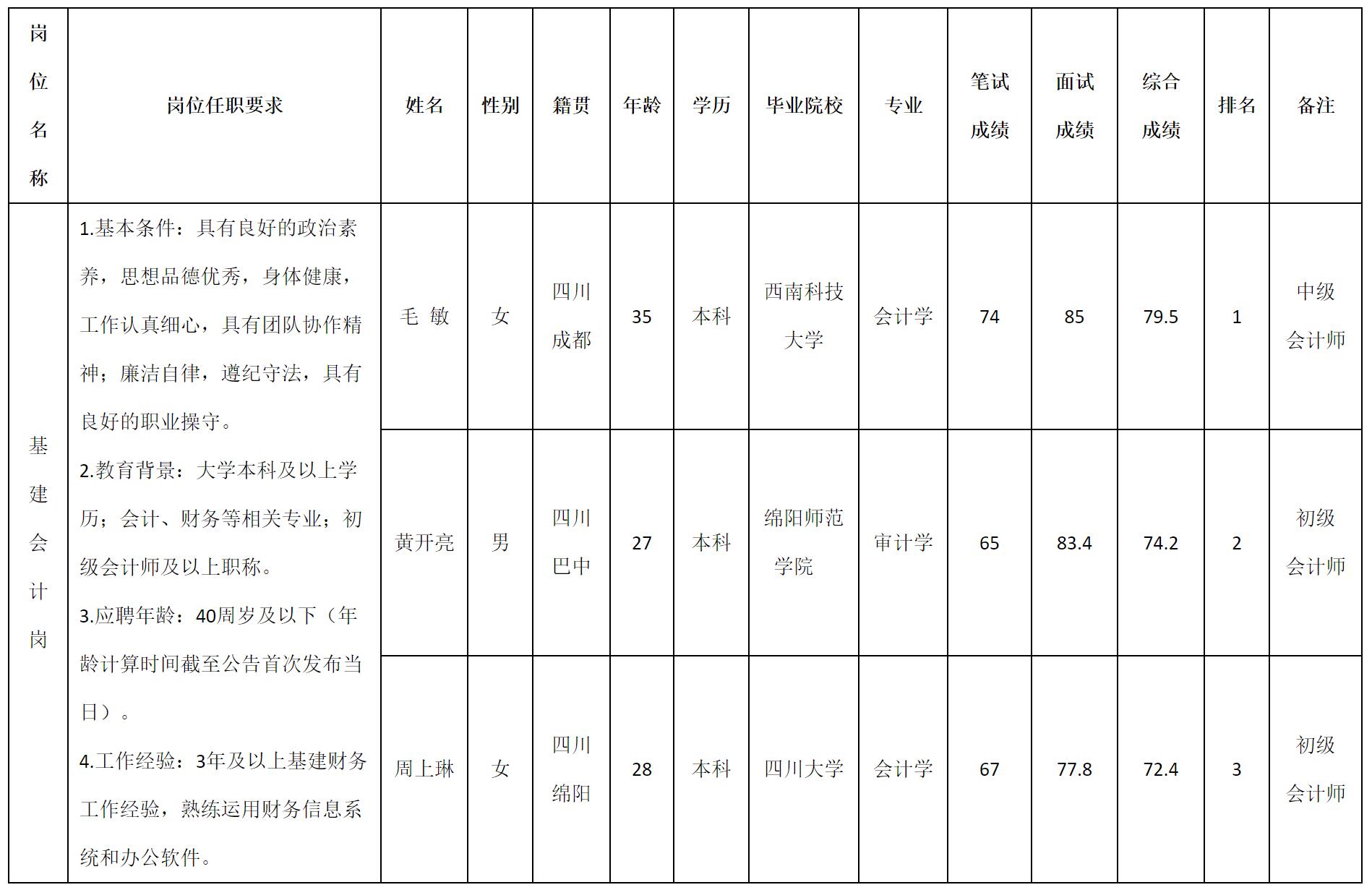 根據(jù)富達(dá)公司發(fā)布的招聘公告及招聘相關(guān)規(guī)定,經(jīng)筆試、面試程序,現(xiàn)將成績予以公示。