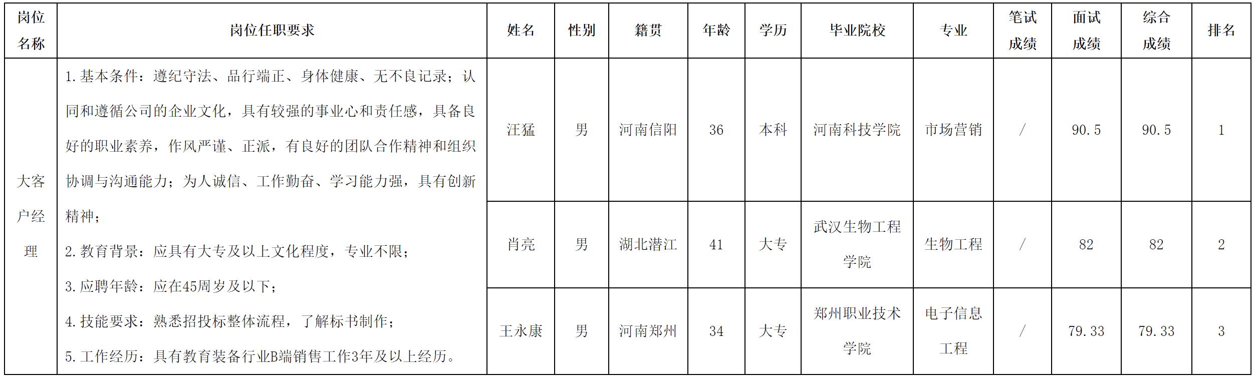根據(jù)四川長虹教育科技有限公司發(fā)布的招聘公告及招聘相關(guān)規(guī)定,經(jīng)面試等程序,現(xiàn)將面試成績予以公示。