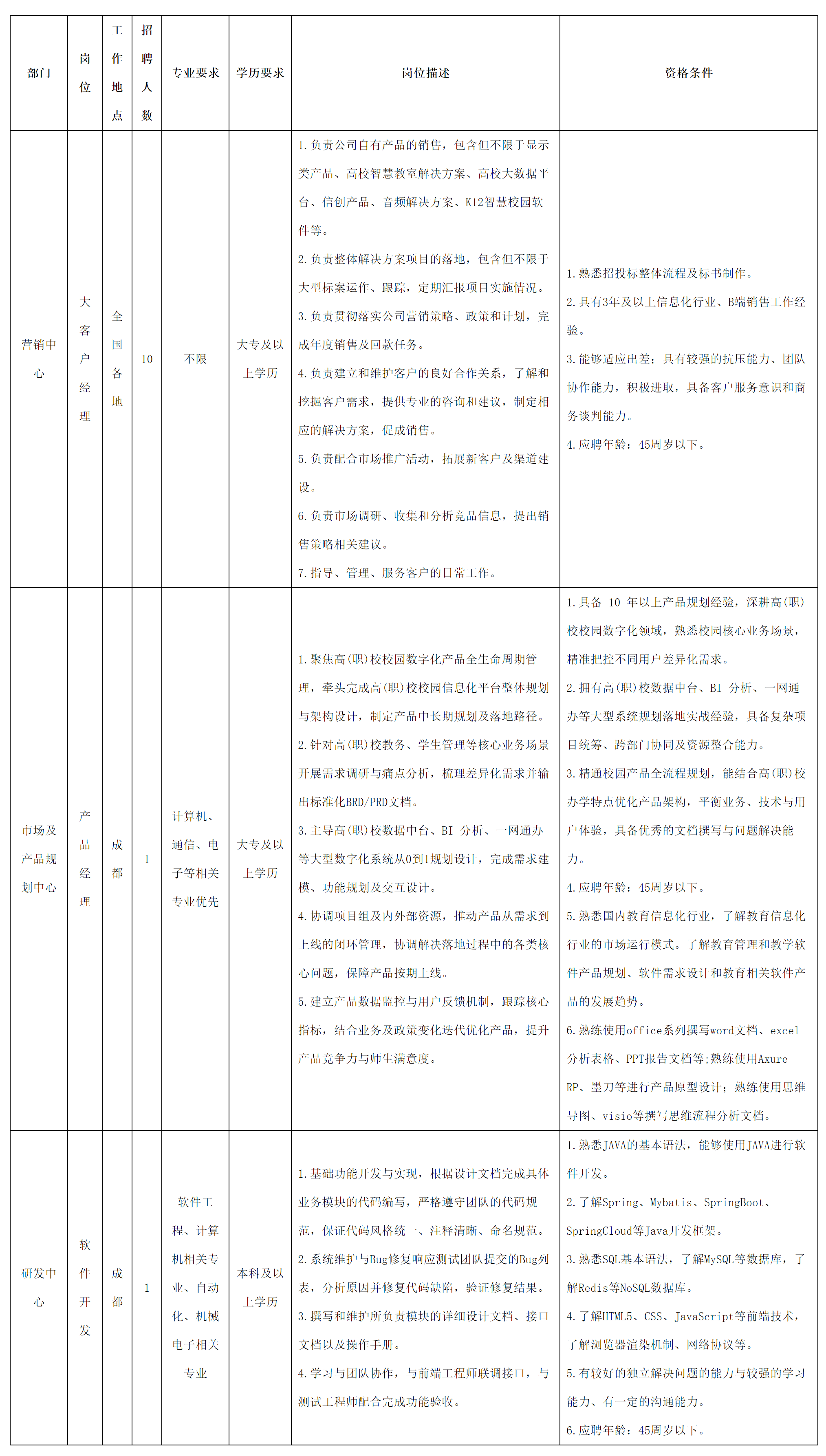 因業(yè)務(wù)發(fā)展需要,現(xiàn)誠(chéng)聘英才,招聘崗位及要求如下: