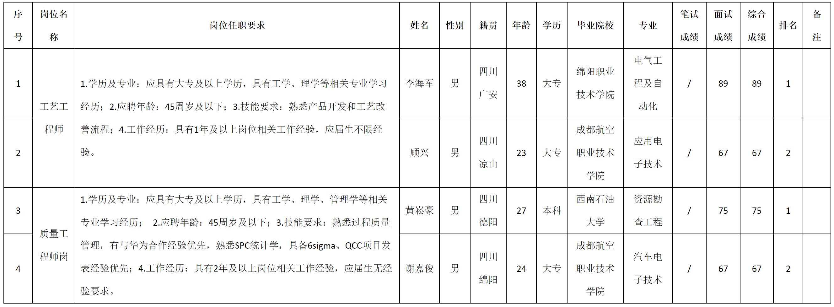 根據(jù)四川九華光子通信技術(shù)有限公司發(fā)布的招聘公告及招聘相關(guān)規(guī)定,現(xiàn)將測試成績予以公示。