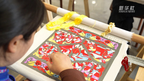 走進湖南省張家界市永定區(qū)王家坪鎮(zhèn)馬頭溪村土家族刺繡非遺工坊,繡娘們圍坐案前,飛針走線、凝神創(chuàng)作,省級非物質(zhì)文化遺產(chǎn)代表性項目土家族刺繡代表性傳承人張繡云在一旁全程指導,從制稿、臨稿、配色到繡織,每一道工序都精益求精。