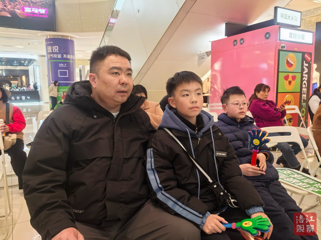市民余貴旭告訴記者,他沒去成比賽現場,趁著逛街的機會,選擇和孩子在凱德廣場觀賽點收看比賽實況。