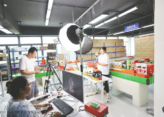 直播間里包裝精致的農(nóng)特產(chǎn)品整齊陳列。