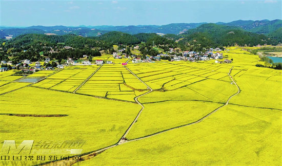 在春日三臺這幅斑斕的畫卷中,濃墨重彩的一筆當(dāng)屬三元鎮(zhèn)的油菜花海。沿著三元鎮(zhèn)魏城河一路前行,春風(fēng)拂過,兩岸層層金色的花浪次第翻開,空氣中彌漫著清甜的油菜花香。金燦燦的花海與碧波蕩漾的河水、干凈整潔的村莊交相輝映,宛如一幅渾然天成的田園畫卷,吸引著四方游客前來踏青賞花。