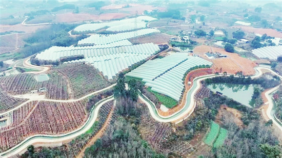 俯瞰安州區(qū)黃土獼猴桃現(xiàn)代農業(yè)園區(qū)。