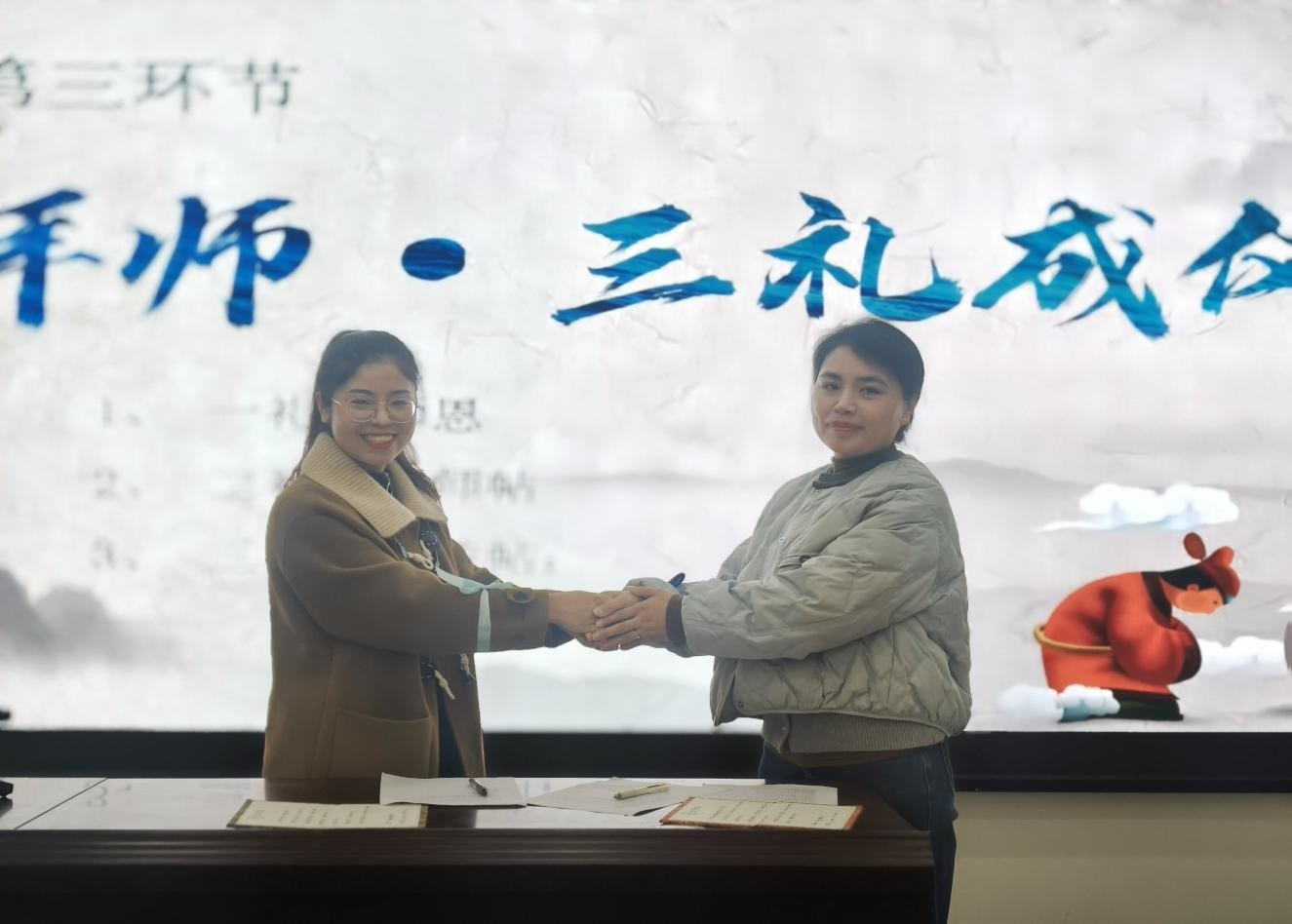 ·一禮敬師恩:徒弟們面向師父,深深鞠躬,表達(dá)對師父傳道授業(yè)解惑的崇高敬意。· 二禮呈拜師帖:徒弟們雙手捧起印有石馬中學(xué)專屬LOGO 的拜師帖,鄭重地遞到師父手中,并敬上一杯清茶。茶香裊裊,承載的是求學(xué)的赤誠與敬意。· 三禮受回徒帖:師父們接過拜師帖,品飲香茶后,將同樣精美的回徒帖贈與徒弟。一來一往間,一份沉甸甸的師徒情誼與責(zé)任就此締結(jié)。