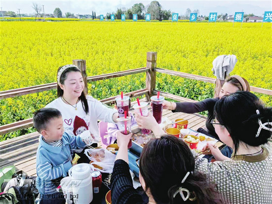 3月13日,安州區(qū)第十屆鄉(xiāng)村文化和旅游消費(fèi)季在秀水鎮(zhèn)拉開帷幕,游客在特色美食區(qū)一邊品嘗美食,一邊觀賞春日美景。 記者 安崢 攝