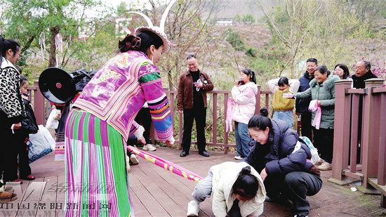 3月14日,三臺縣北壩鎮(zhèn)“花神迎春 緣聚水文”桃花文旅消費(fèi)季啟幕,吸引了眾多游客暢享春日美好時光?!∮浾?李春梅 攝