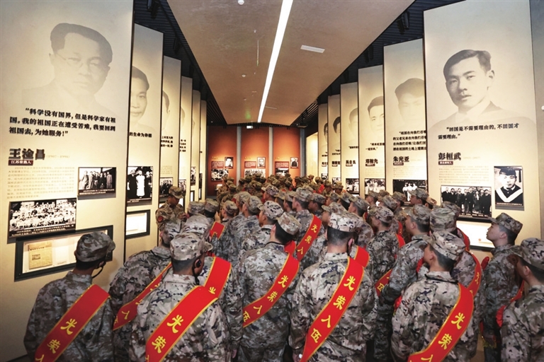 新兵們在兩彈城博物館參觀。 記者 陳冬冬 攝