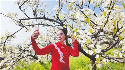 游客打卡梨花節(jié)。