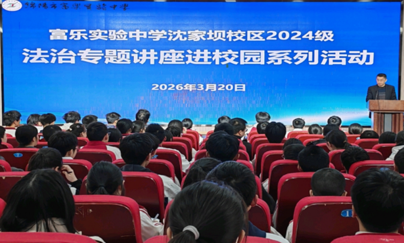 綿陽新聞網(wǎng)訊 為了筑牢學(xué)生法治安全思想防線,提升自我保護(hù)意識,3月20日,綿陽市富樂實(shí)驗(yàn)中學(xué)法治副校長劉沫汝檢察官走進(jìn)校園,為沈家壩校區(qū)2024級師生開展了以“拒絕校園欺凌 規(guī)范網(wǎng)絡(luò)言行”為主題的2026年春“用法治守護(hù)青春的你”講座活動。富樂中學(xué)黨委副書記楊鋒主持活動。