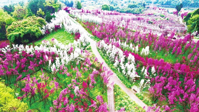 春風一吹,江油青蓮的桃花就藏不住了。近日,記者沿著綿江公路往青蓮鎮(zhèn)走,李白故里桃博園已進入盛花期,只見殷紅、柔粉、雪白層層疊疊,把丘陵溝壑鋪成一片流動的花海,雞犬聲混著花香,滿是鄉(xiāng)村春日的煙火氣。