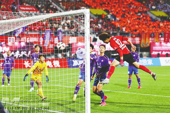 比賽第31分鐘,綿陽九洲長虹隊(duì)踢進(jìn)一球,將比分扳平至1∶1。
