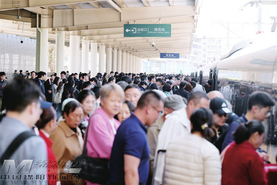 在綿陽站,出行旅客正在上車。記者 唐舒琪 攝