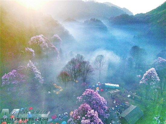 在大屋基,記者遇見了正忙著拍攝辛夷花海的曹先生。今年整個(gè)清明假期,他帶領(lǐng)伙伴們駐扎在山上,通過(guò)無(wú)人機(jī)航拍,將藏王寨的美景發(fā)布在社交平臺(tái)上,“希望讓這藏在深閨的辛夷花走出去,為我們江油文旅融合發(fā)展增光添彩!”?。ú軕c勇 劉彩萍 劉冬梅 記者 陳元松)