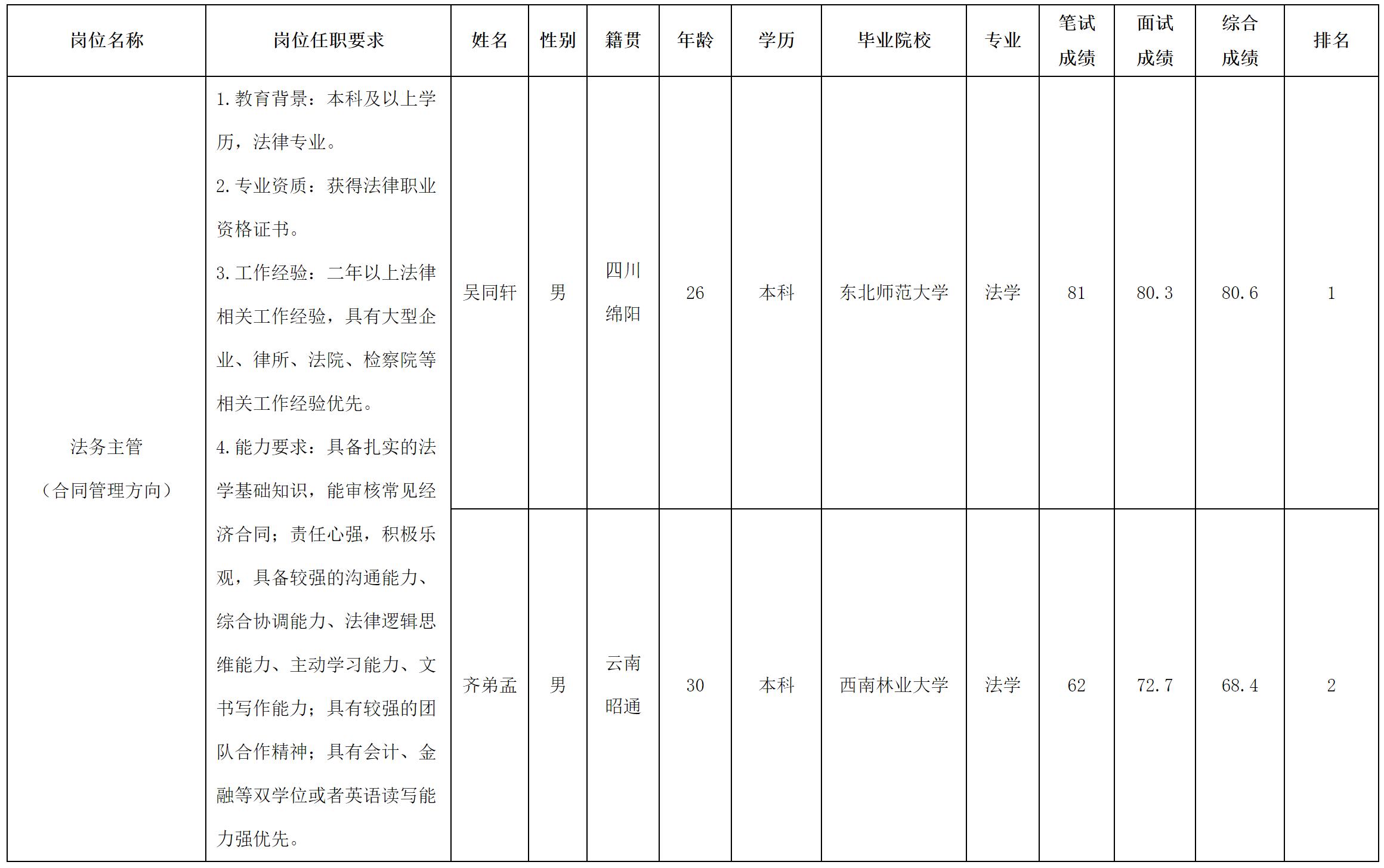 根據(jù)四川長(zhǎng)虹電子控股集團(tuán)有限公司發(fā)布的招聘公告及招聘相關(guān)規(guī)定,經(jīng)筆試、面試等程序,現(xiàn)將測(cè)試成績(jī)予以公示。