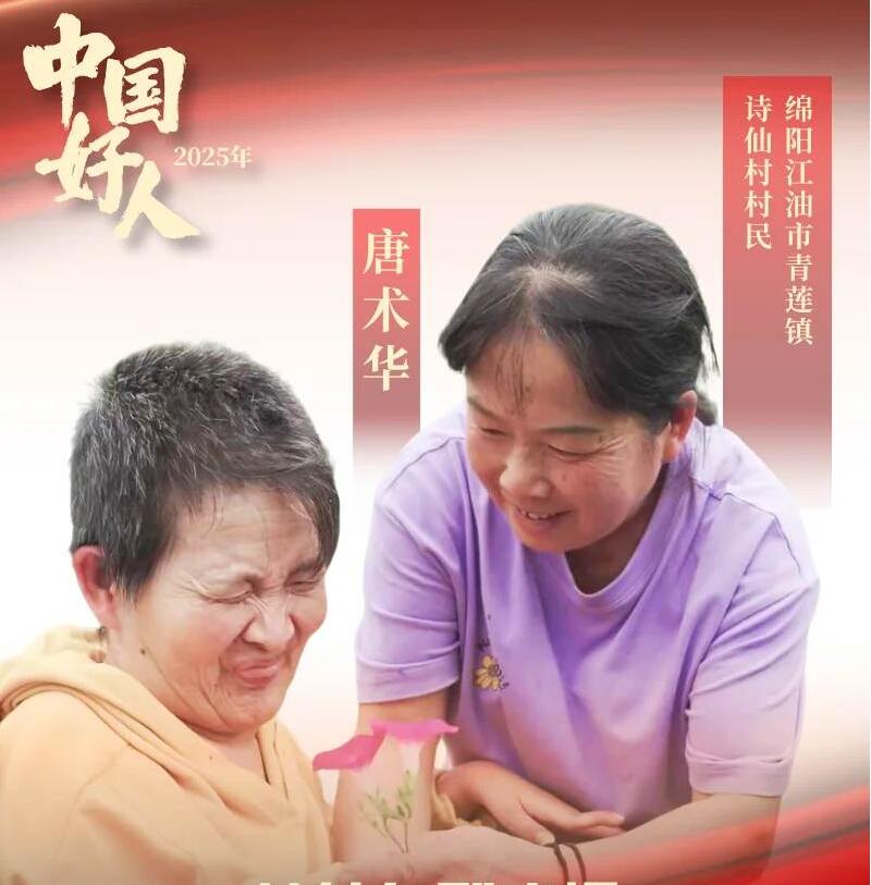近日,2025年第三次“中國好人榜”發(fā)布,涵蓋助人為樂、見義勇為、誠實(shí)守信、敬業(yè)奉獻(xiàn)、孝老愛親五大類別。江油市青蓮鎮(zhèn)詩仙村農(nóng)婦唐術(shù)華,28年如一日悉心照顧癱瘓妹妹,獲評(píng)“孝老愛親”類“中國好人”。[