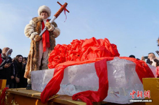 哈爾濱采冰節(jié)啟幕 千人唱號(hào)子“采頭冰”