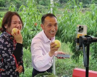 近日,三臺縣古井鎮(zhèn)黃桃果園里迎來一場特別的“田間課堂”——翠綠的枝葉間,粉白透紅的水蜜桃掛滿枝頭,百余名學員舉著手機支架穿梭其間,在助農(nóng)“直播團”導師的指導下,將鏡頭聚焦累累碩果,實地操練直播帶貨。 [