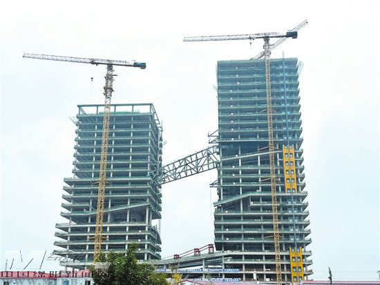 云上大學城雙塔80米高空成功“牽手”