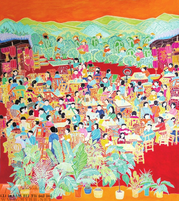 由文化和旅游部公共服務司、國家博物館主辦的“大地繪彩——2025年農民畫大展”,日前正在國家博物館展出。綿陽鹽亭縣文化館楊若雪的《茶香傳薪新·享茶品豐饒》、陳維兵的《幸福果農》雙雙入展。[