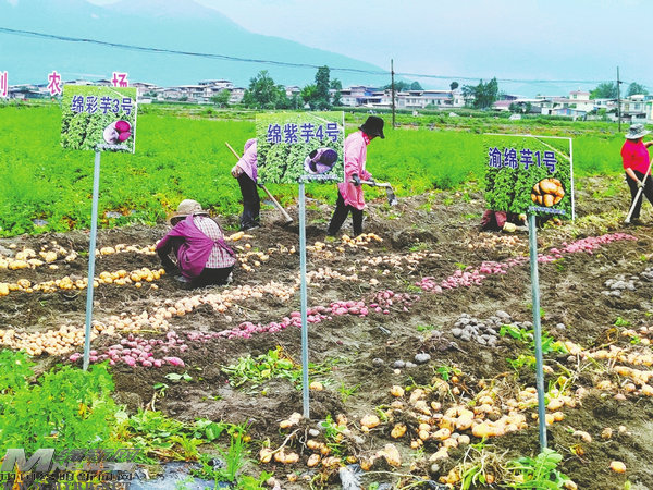 近日,在江油武都鎮(zhèn)馬鈴薯標準化生產基地,采收拖拉機往返穿梭,新鮮的馬鈴薯被翻掘出土,一群工人緊隨其后,拾撿馬鈴薯,忙得不亦樂乎…… [