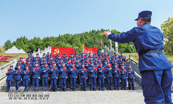 3月29日,綿陽市消防救援支隊(duì)到綿陽飛龍山紅色教育基地,舉行以“百名黨員、百斤重?fù)?dān)、百分征程”三個(gè)“一百”為主要內(nèi)容的“傳承紅色基因勇挑消防重?fù)?dān)”主題教育。 [